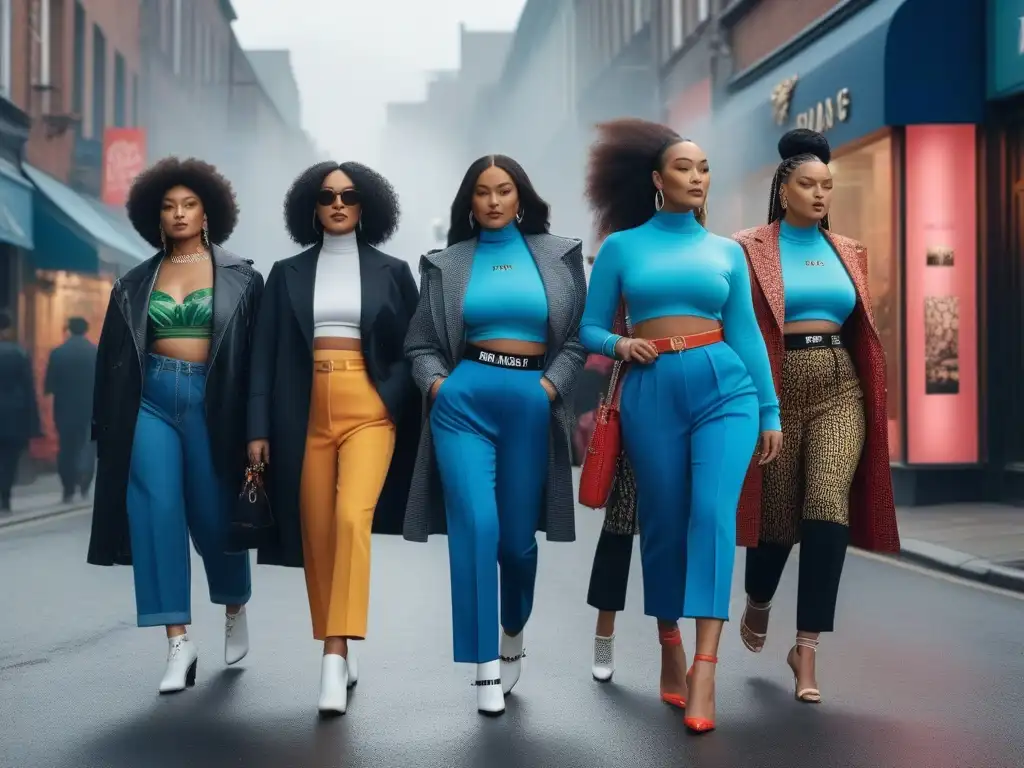 Moda inclusiva para todos los cuerpos: Grupo diverso con atuendos Kenzo en una ciudad vibrante