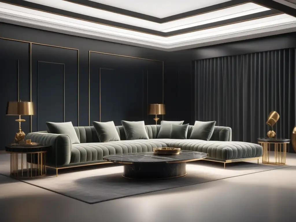 Salón moderno de lujo con mobiliario elegante y sofisticado