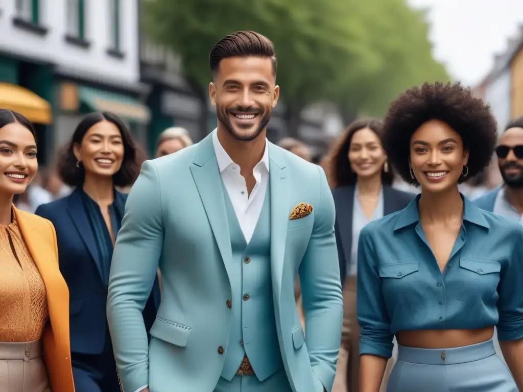 Un grupo diverso y vibrante disfruta de la moda inclusiva sostenible en un entorno urbano sostenible y moderno