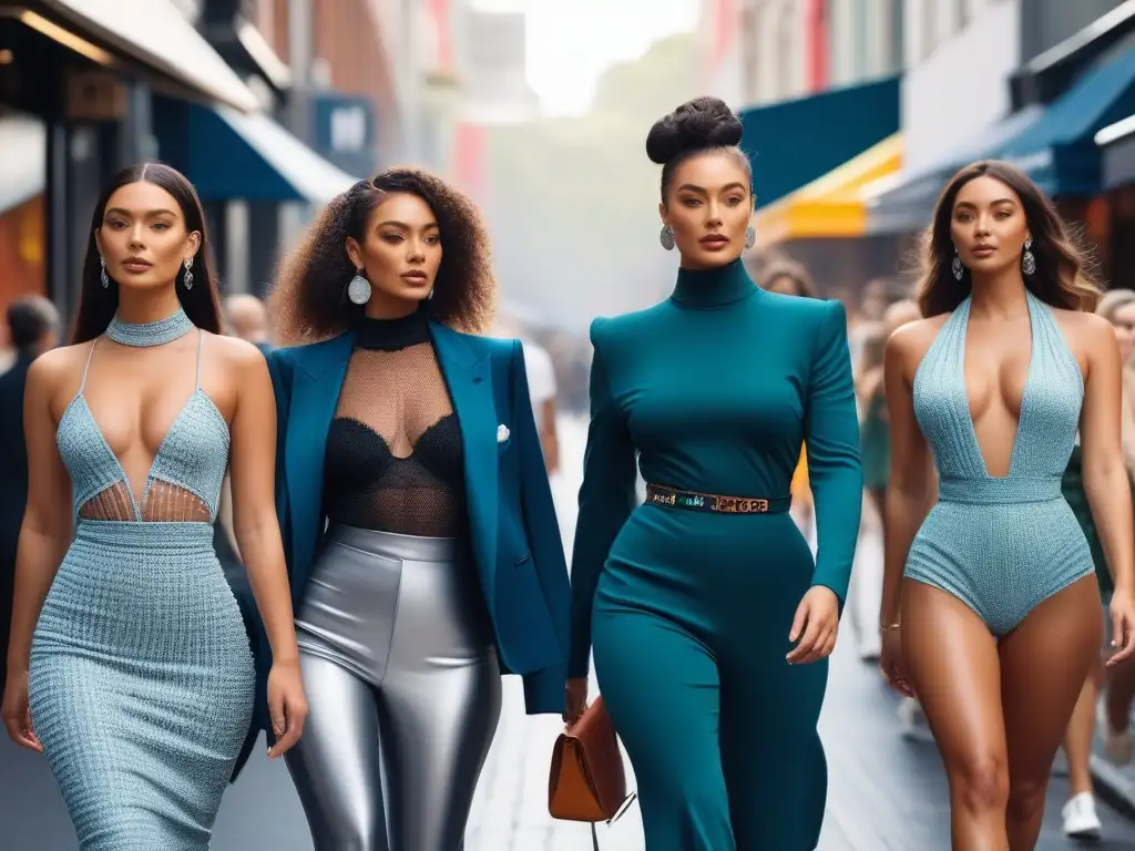 Una imagen inspiradora de moda inclusiva con influencers diversos en una calle de Melbourne