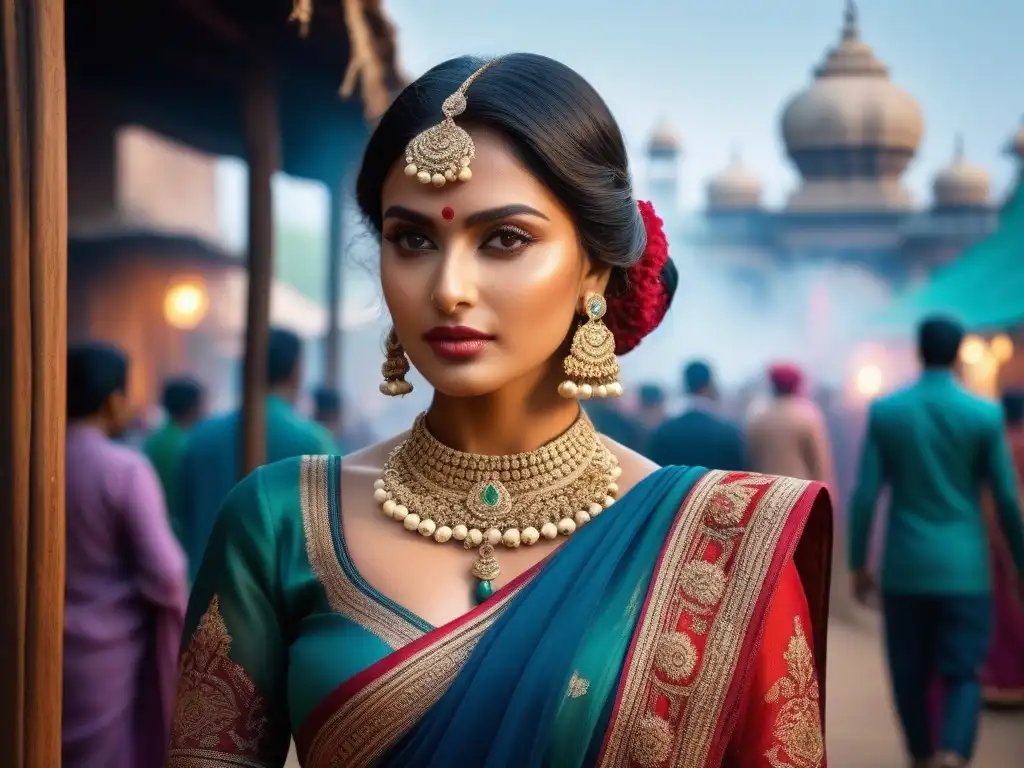 Un bullicioso mercado en India subcontinente, con moda inclusiva y diversidad cultural